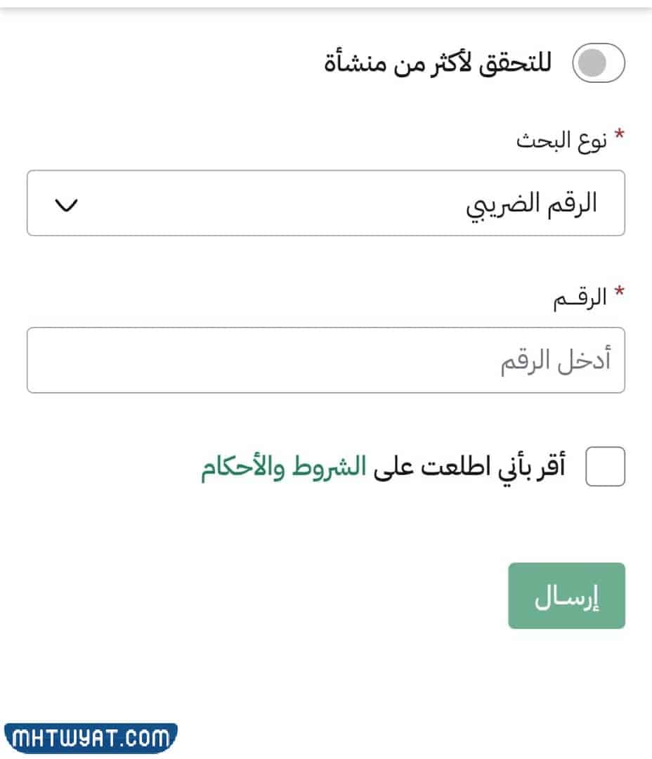 يُمكنك الاستعلام عن رقم ضريبي في السعودية عبر الرابط التالي zatca.gov.sa، وذلك بالنقر على الرابط المُدرج للانتقال المباشر إلى خدمة التحقق من تسجيل المنشآت بضريبة القيمة المضافة، من ثم إضافة الرقم الضريبي واستكمال التحقق بعد الموافقة على الشروط والأحكام.